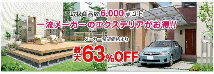 エクスショップは外構部材の設置が得意です。カタログ価格の最大69%OFFの価格で安く設置でき、品揃えも豊富です。