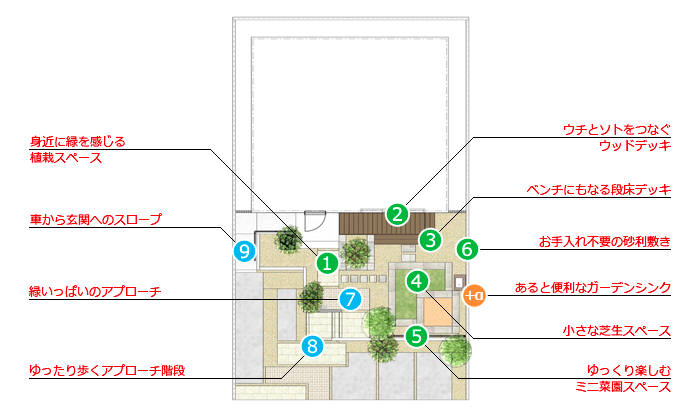 | 庭まわり | 人工芝・植栽・テラスなどの配置 |