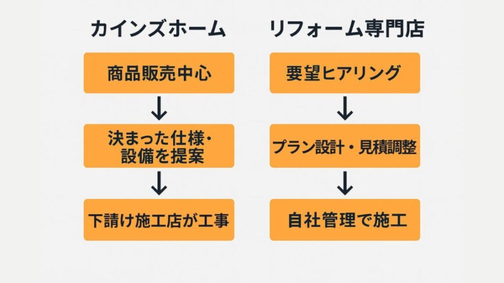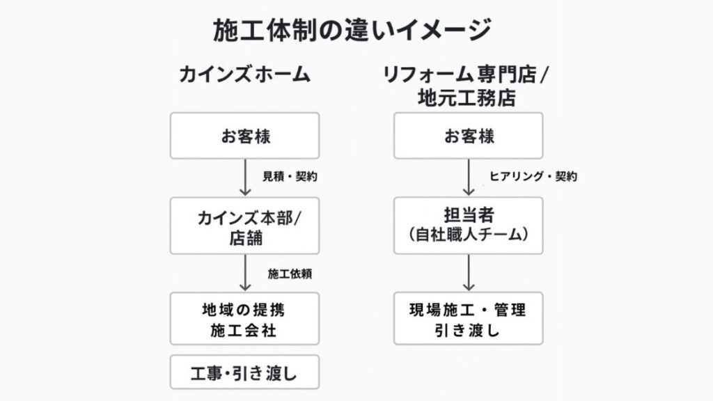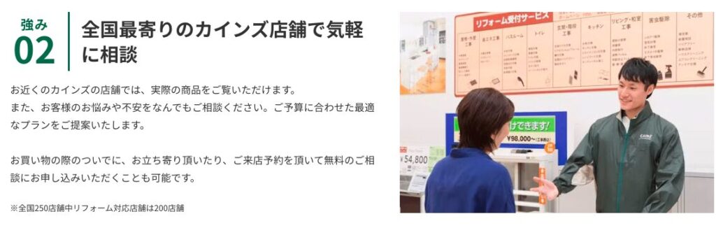 カインズホームのリフォームは、工事を地域提携施工店が請け負う仕組みになっています。