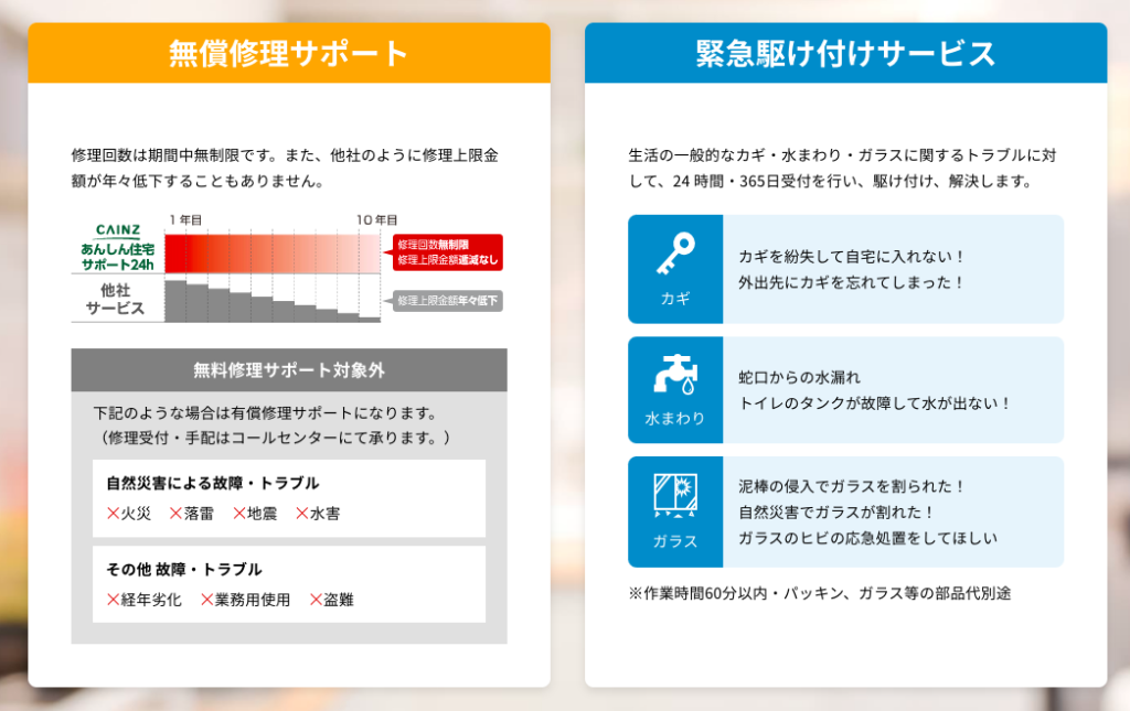 カインズリフォームでは、公式に以下のアフター体制を記載しています。