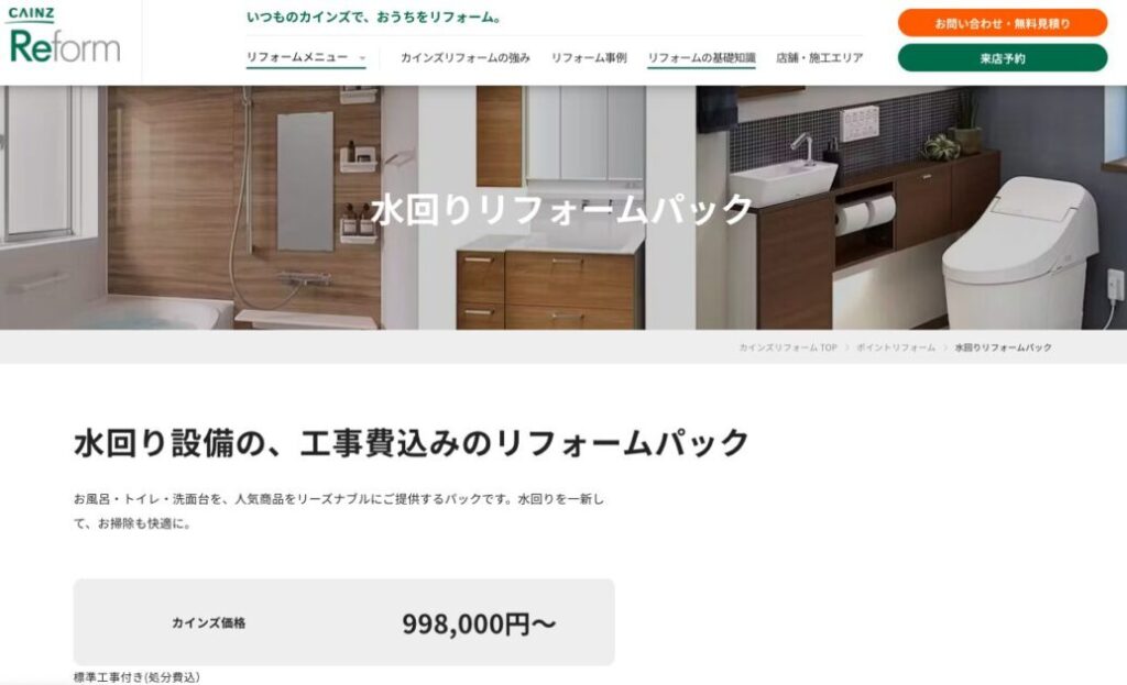 公式では「水まわりパック」「リフォームローン(オリコ提携)」「住宅省エネ補助金対応」など、価格+特典+補助金の3方向からサポートを受けられるためです。