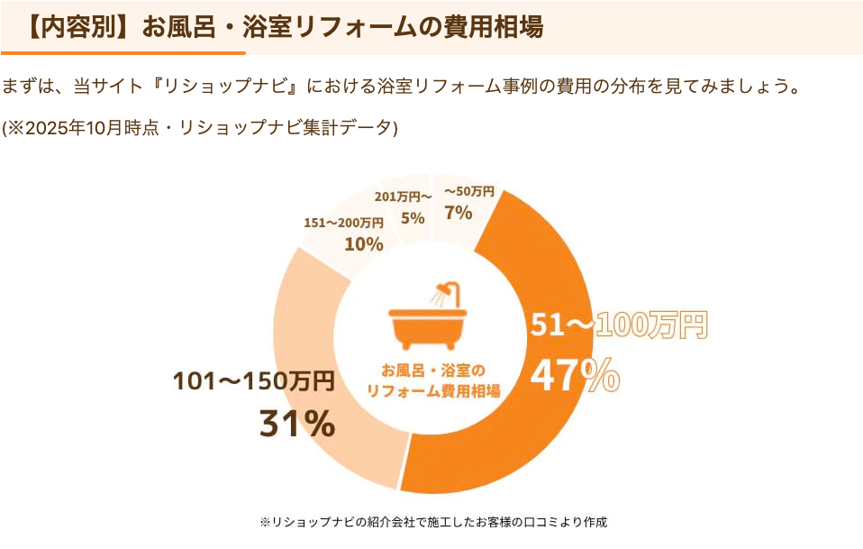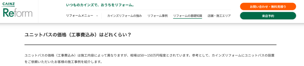 引用:カインズ公式サイト「ユニットバスの価格(工事費込み)はどれくらい?」