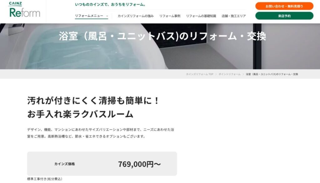 引用:カインズ公式サイト「浴室(風呂・ユニットバス)のリフォーム・交換」
