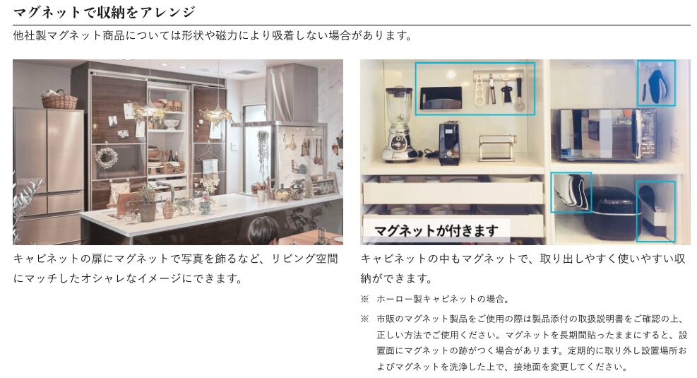タカラスタンダードのカップボードはマグネットが使えるホーロ素材を使用。