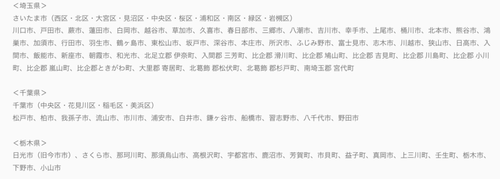 対応地域 | 全国 | 東京・千葉・神奈川・埼玉(詳細要問い合わせ) | 全国 |
