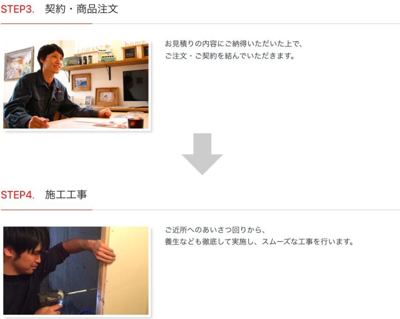特徴 | さまざまな施工に対応できる「マルチスキルワーカー」を育成していて、同じスタッフが一貫して施工に当たるのが特徴。これによってコストや工期を抑えられるのが魅力。 |