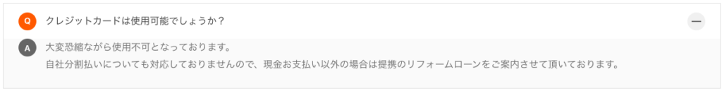 A.使用不可となっています。現金支払い以外の場合は提携のリフォームローンを案内しています。