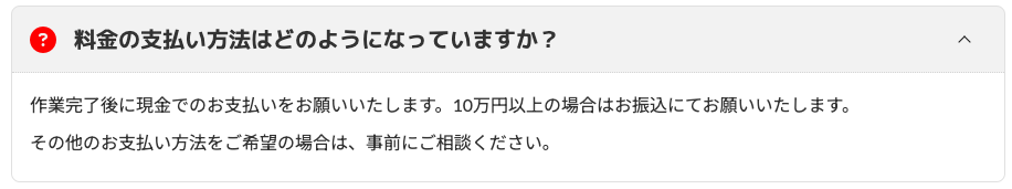 クレジットカードは基本的に使えないので、「現金化」か「提携ローン」で支払う仕組みになっているので、資金計画を立ててから依頼することが大切です。