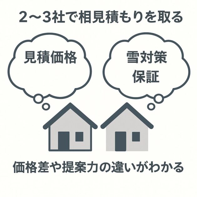 現地調査〜見積もりは原則無料なので、まずは2〜3社で相見積もりを取り、次の3点を比べると失敗しにくいです。