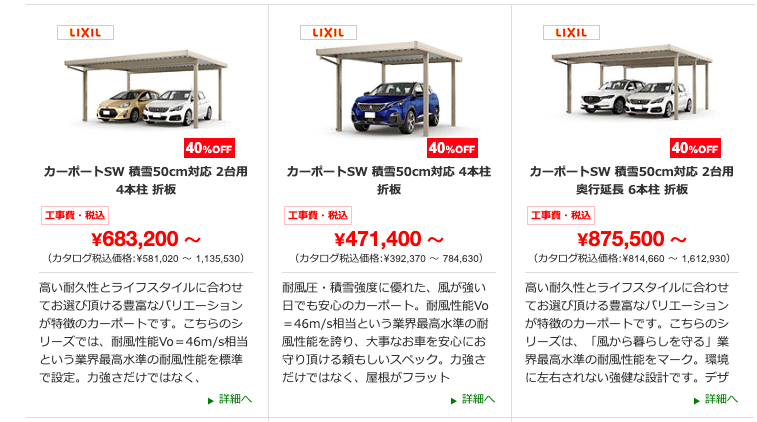 - 小規模外構(カーポート・フェンスなど)を安く済ませたい