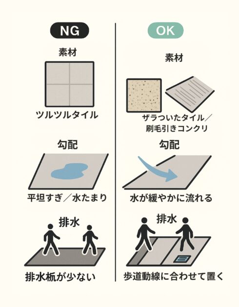 - 提案(冬の動線・排水・滑り止め素材・3Dパースの分かりやすさ)